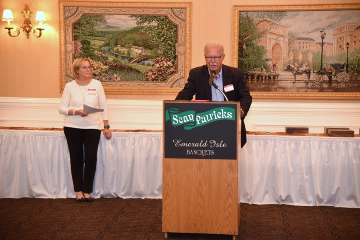 [James Gallery '69 accepting Distinguished Alumni Award on behalf of Jeremy'58 and Margaret Jacobs '58]