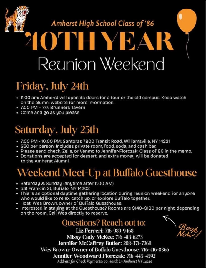 The Class of 1986 is having a 40 Year Reunion, which will take place 7/24-7/26.